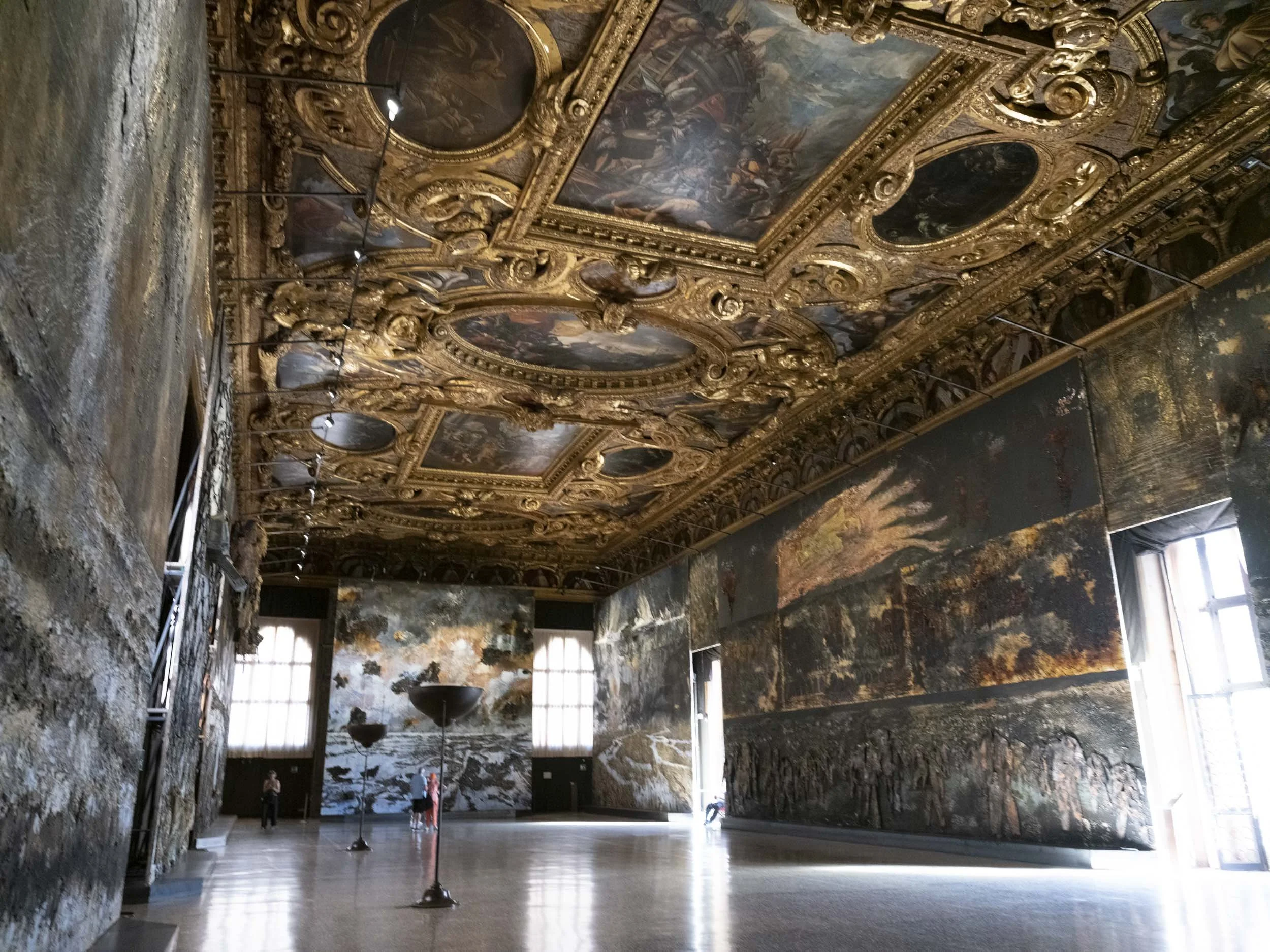The interpretation could be Tintoretto, whose colors Kiefer borrows. In painting the glory of Venice he uses a sometimes a dark, almost dramatic trait. In his paintings, there is not the light-heartedness of Veronese, or the civic commitment of a Vasari, nor the typical French pomp, but a melancholy that is precisely that of a late summer day in Venice. So, as I left, I think I understood the provocation: even the paintings of the Venetian Renaissance masters are ruins left for those who would come later. Kiefer is credited with having wanted to continue to embellish this stone sarcophagus of the Venetian culture which is the ducal palace.